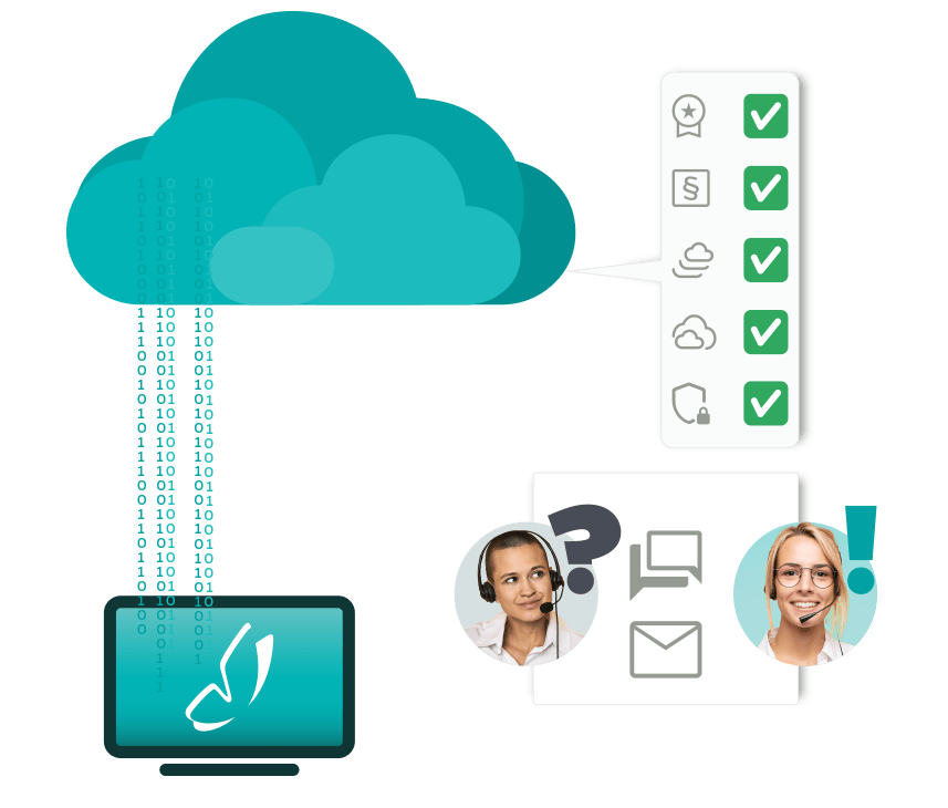 Unsere Cloud-Services laufen in zertifizierten Rechenzentren nach ISO/IEC 27001, die physisch und logisch gegen unbefugten Zugriff geschützt sind. Die Speicherung erfolgt gemäß den Anforderungen der DSGVO und unterliegt deutschem Datenschutzrecht.